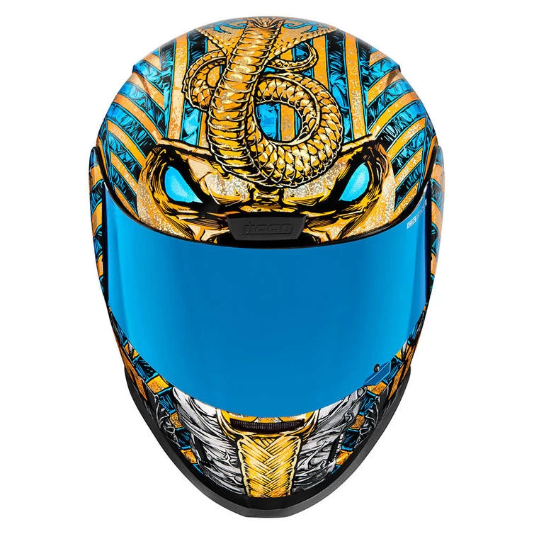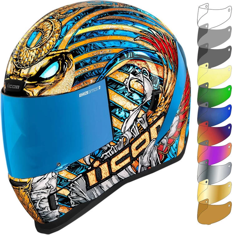 The Icon Airform Pharoah Egyptian Motorbike Crash Lid and Visor